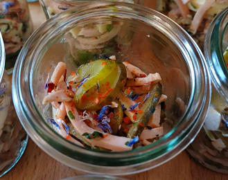 mit fruchtiger edler Salatsauce im Reagenzglas