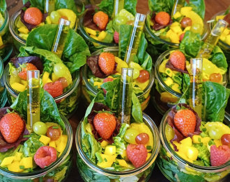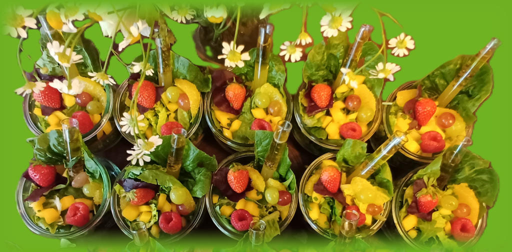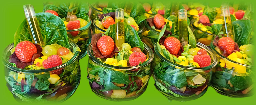 Grüne Salat-Vielfalt mit frischen Früchten,