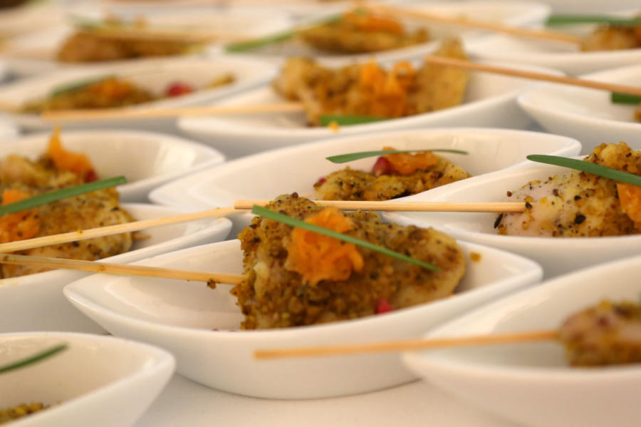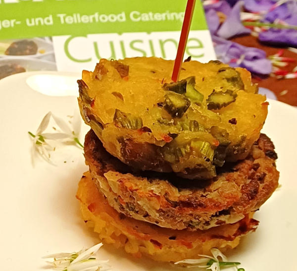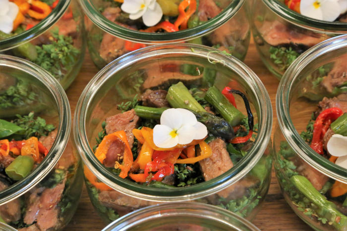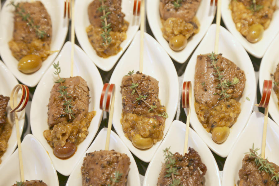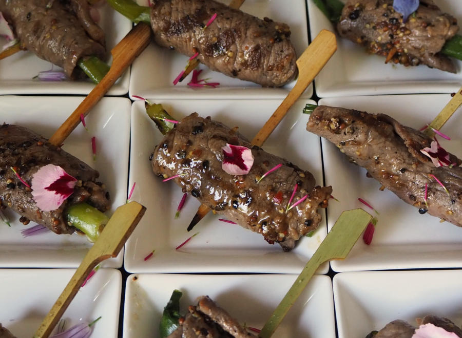 Roastbeef- oder Rinderfilethäppchen mit gegrillter Paprika,