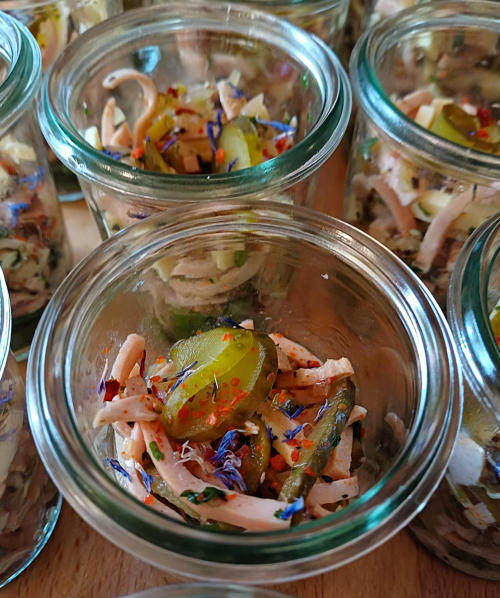 Allgäuer Hütt‘n Wurstsalat mit in Senf gedünsteten Zwiebeln,