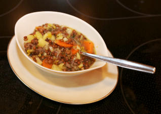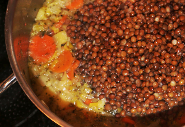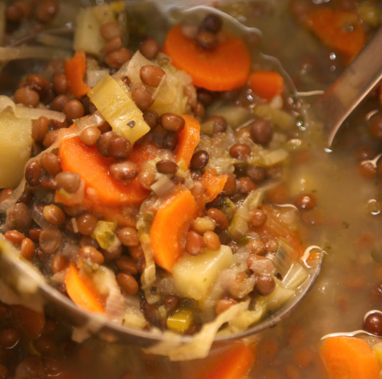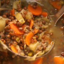 Linsensuppe, hät nor Saisongemüse em Döppe. Dat besondere es,